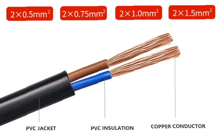 2×1.0mm² H05VVH2-F,H05VV-F, H05RR-F, H05RN-F, H03RT-F, H07RN-F, RVV, YZ, YZW